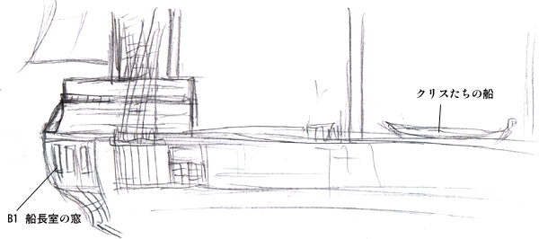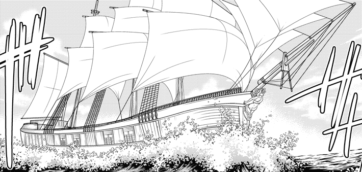 (第1話19ページ目より、船全景)